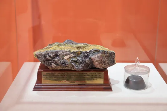 展柜中,新中国发现的第一块铀矿石模型格外醒目。1954年,这块矿石在广西被找到,成为国家决定发展核工业的重要依据。