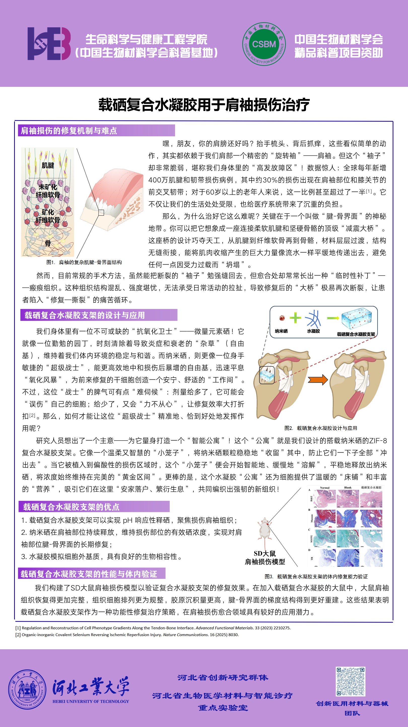 支持单位:中国生物材料学会科普基地河北工业大学生命科学与健康工程学院、河北省生物医学材料与智能诊疗重点实验室。