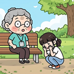 中后期痴呆老人会认不出自己的孩子、家人,就会产生不信任感,情绪也会放大化,让他们产生“此处不是我的家,我要回自己家”的想法,导致总想往外跑。此时不要和他们讲道理,也不要试图“掰正”他们的话,这样只会加重信任危机,我们需要“顺毛捋”,稳住情绪,再转移注意力: