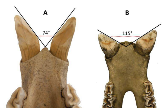 左侧为爪哇犀的门齿,右侧为印度犀