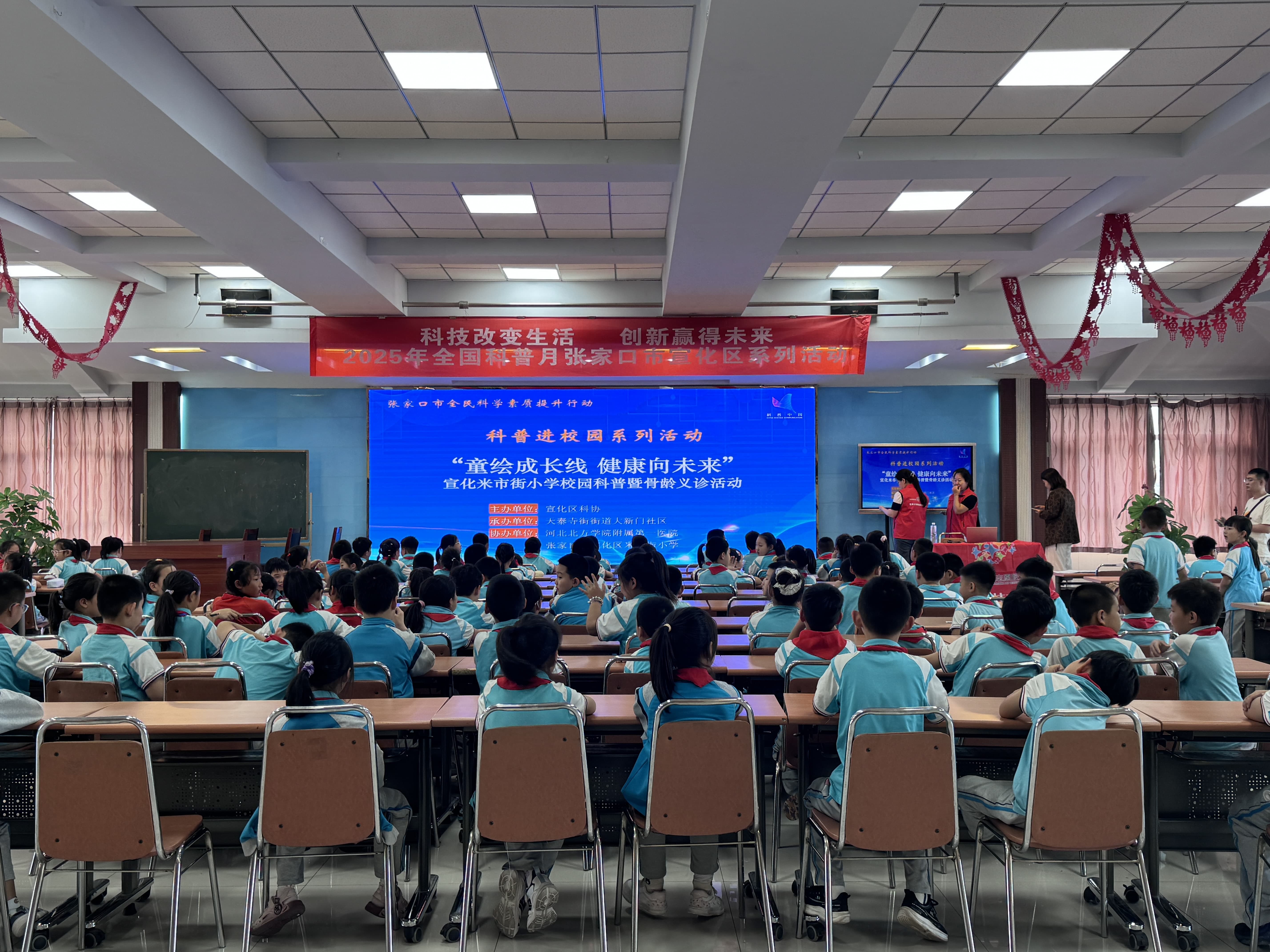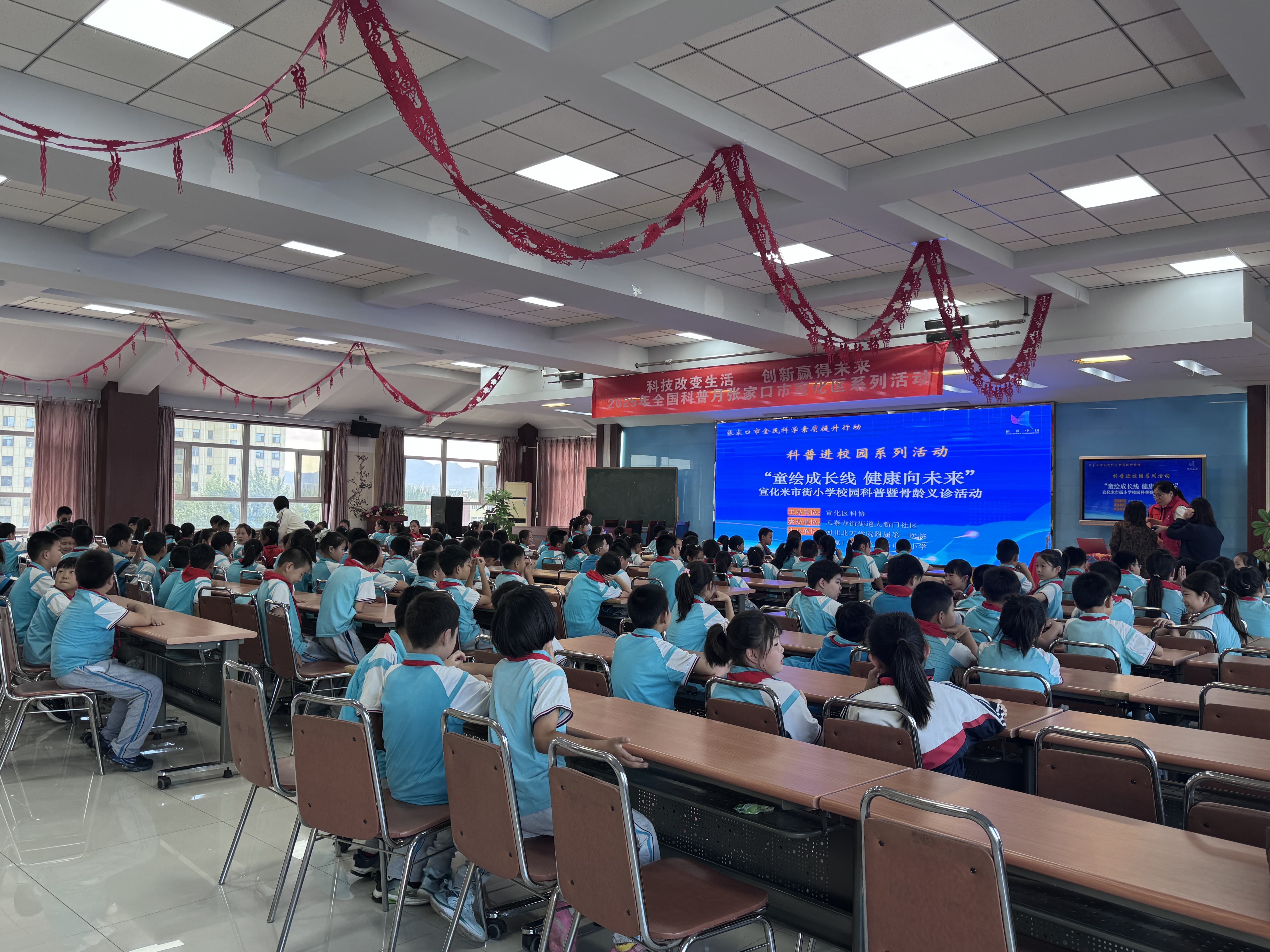 9月19日下午,正值2025年全国科普月活动热潮,宣化区科协联合天泰寺街街道大新门社区、河北北方学院附属第一医院,携手米市街小学共同承办“童绘成长线・健康向未来”校园科普暨骨龄义诊活动。活动依托优质医疗资源与社区服务力量,将生长发育健康知识与专业医疗服务送进校园,为青少年健康成长筑起“科学防护墙”,切实落实全国科普月“提升全民科学素质,夯实科技强国基础”的核心目标。