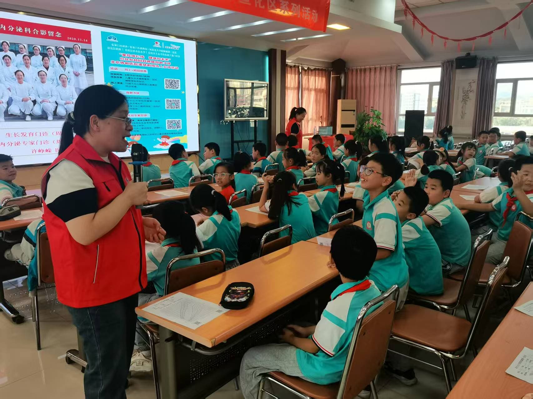 考虑到小学生的认知特点,宣化区科协联合河北北方学院附属第一医院,特别邀请该院内分泌科副主任、副教授许峥嵘带领专业团队,打造了一场“沉浸式”健康科普课堂。许教授摒弃传统说教模式,用童趣化语言讲解生长发育关键知识:“每天睡够8小时,身体才能‘偷偷长高高’”“牛奶和蔬菜是‘成长能量包’,缺一不可”“每天户外活动1小时,骨骼才会更结实”,简单直白的表述搭配生动比喻,瞬间抓住孩子们的注意力。