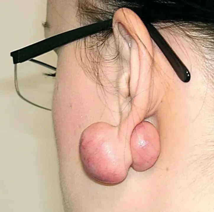 下面的图片,就是一些打耳洞后出现的瘢痕疙瘩。左滑查看↓↓↓