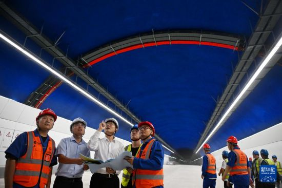 9月22日,中铁十四局建设者在唐山路隧道内检查施工质量。新华社记者 李紫恒 摄