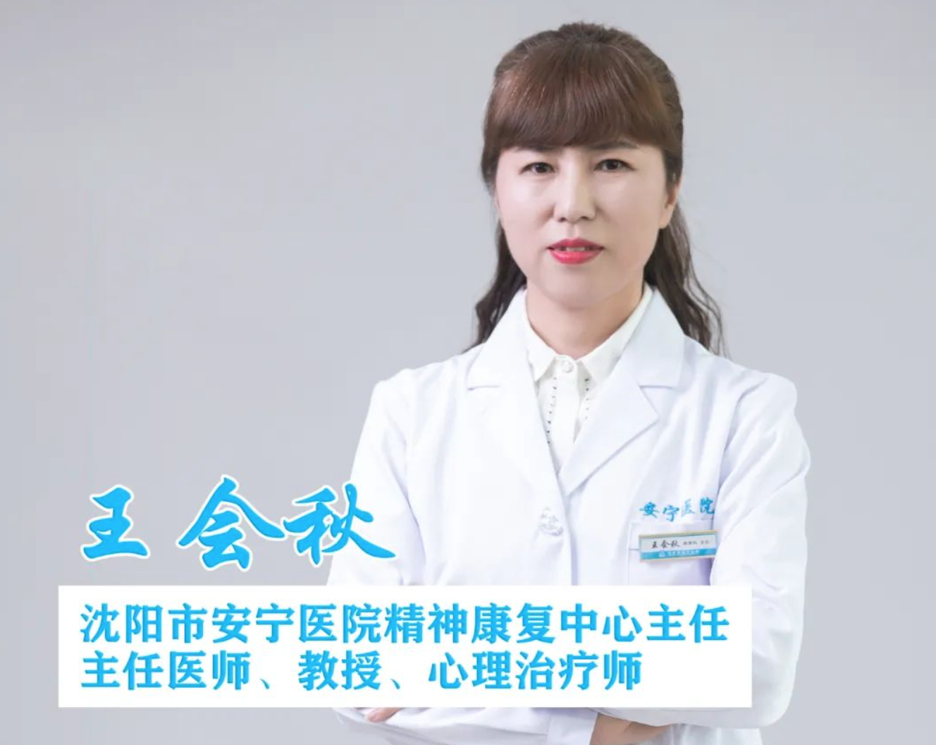 王会秋,主任医师、教授、硕士生导师,国家心理治疗师,系沈阳市安宁医院康复中心主任,沈阳市精神心理康复临床医学研究中心常务副主任、沈阳市心理咨询热线工作室负责人。