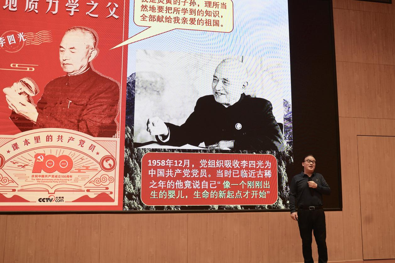 从李四光因误填姓名栏而灵机一动以“光被四表”更名讲起,徐世球生动勾勒出这位科学巨匠从湖北黄冈走出的报国之路。他特别指出,李四光三次转变专业方向——从船舶制造到采矿工程,再到地质学,每一次都紧扣国家需要。“要造船,就要有钢铁;要有钢铁,就得采矿;要采矿,就必须先找矿”,徐教授引用李四光的原话,“这种‘国家需要什么,我就学什么’的信念,正是爱国精神最朴素的体现。”