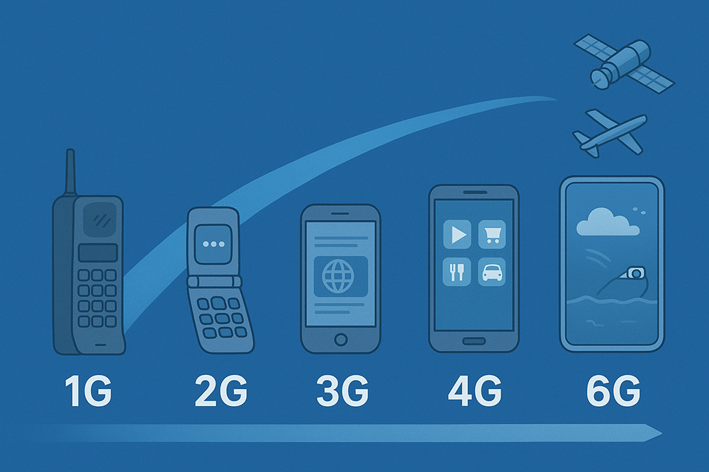 6G(21世纪30前后):还在研发中,目标是“天地一体”,让卫星、地面基站、海上网络无缝连接,真正实现“万物互联”。