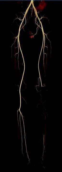 (▲术前双下肢CT血管成像可见左下肢血管闭塞)