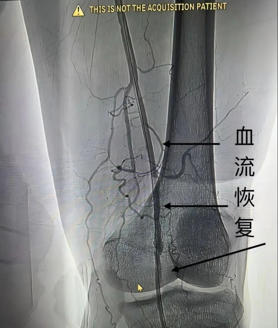 澧县中医医院介入科为该患者运用了目前领先的“下肢动脉斑块旋切术+药物涂层球囊扩张技术”,在精准清除斑块的同时,有效恢复血流,并避免了永久性支架的植入。
