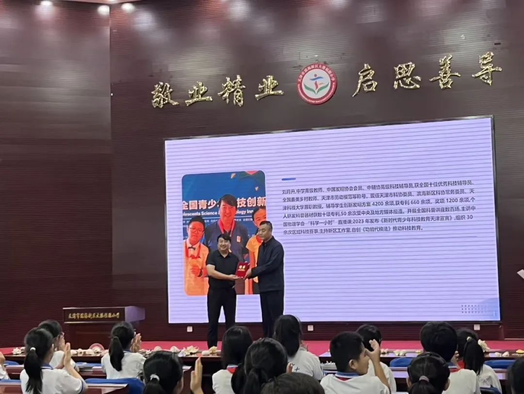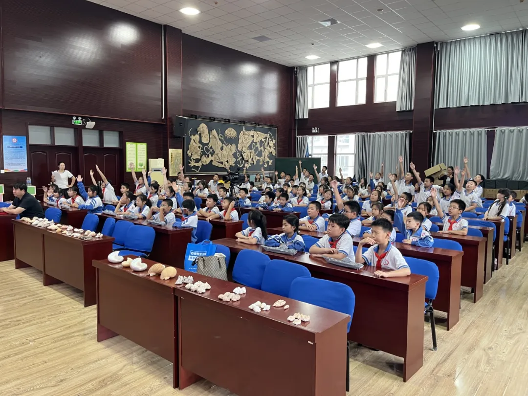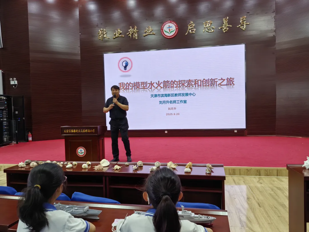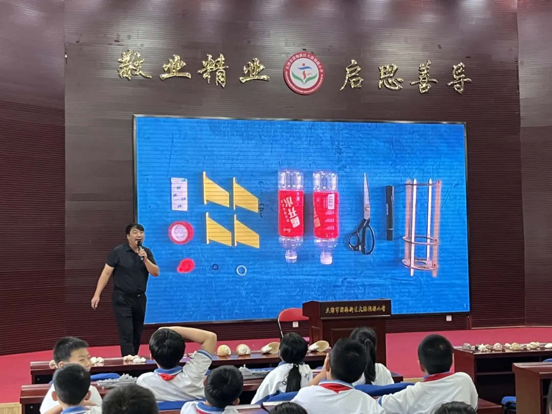 刘月升老师以“我的模型水火箭的探索和创新之旅”为题的讲座则更加生动有趣,他结合自己多年的科学教育、发明创造经验,用通俗易懂的语言为学生们讲解了科学探究的方法和技巧,鼓励学生们勇于提问、探索、记录。他深入浅出地讲解了水火箭升空所依据原理,并播放制作水火箭的教学视频,让同学们学会怎样利用废旧塑料瓶等常见物品,亲手制作自己的水火箭。视频中,一支支满载着梦想与好奇的水火箭拔地而起,在空中划出美丽的弧线,引来孩子们的阵阵欢呼。讲座中穿插多个互动问答环节,学生们踊跃发言,现场气氛高涨。