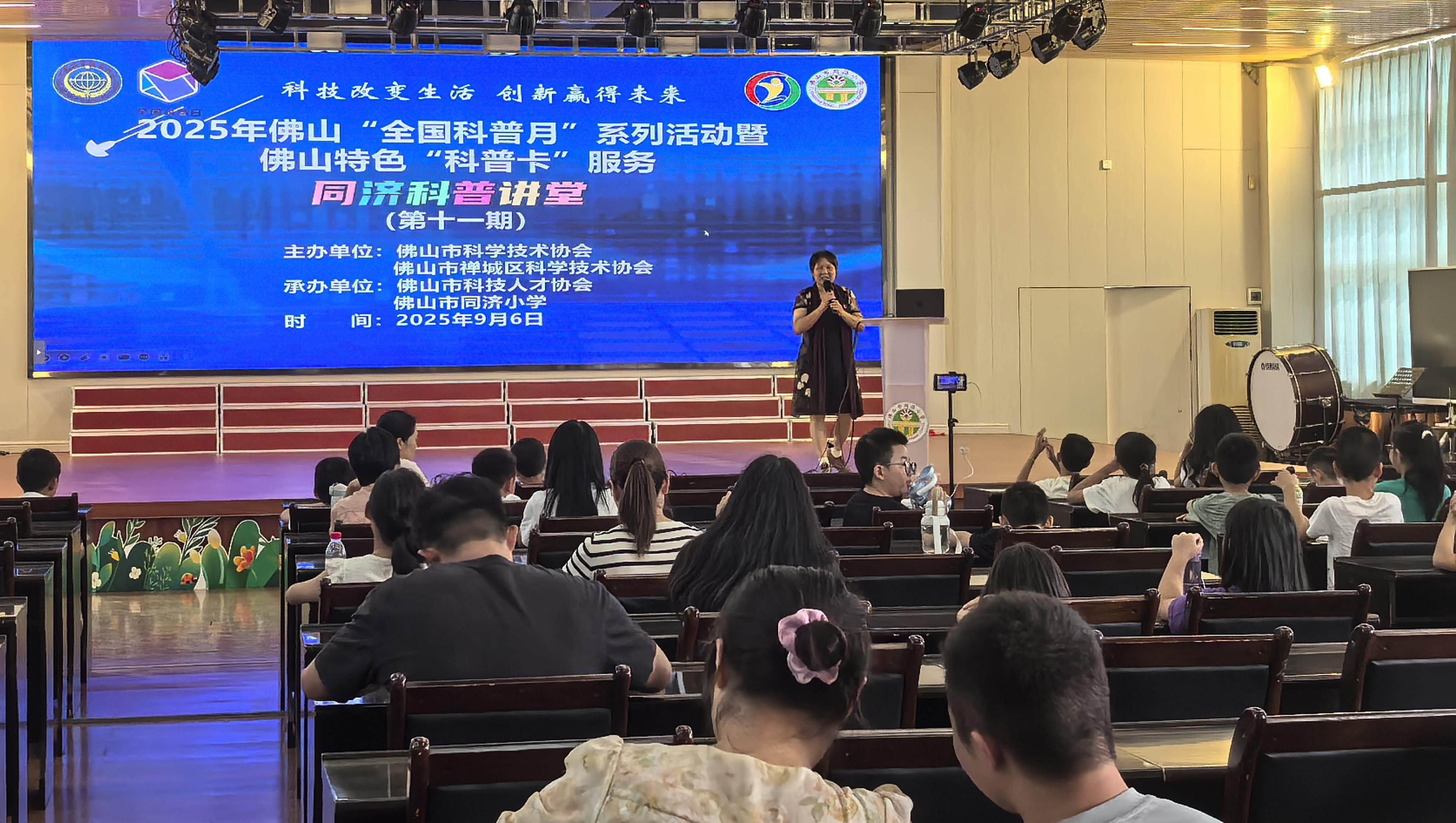 2025年9月6日,首个“全国科普月”来临之际,在佛山市科协和禅城区科协的大力支持下,佛山市科技人才协会和佛山市同济小学,联合举办了以“科技改变生活,创新赢得未来”为主题的2025年佛山市“全国科普月”系列活动暨“同济科普讲堂”(第十一期)。活动特邀广东省青少年科技创新团队的杰出带头人,同济小学科技教育资深教师张秀香,开展题为《科技创新大赛的项目选题与参赛技巧》的专题讲座。旨在激发青少年对科学技术的兴趣,培养其创新思维与实践能力,引导他们积极投身于科技创新大赛与科学体验活动。