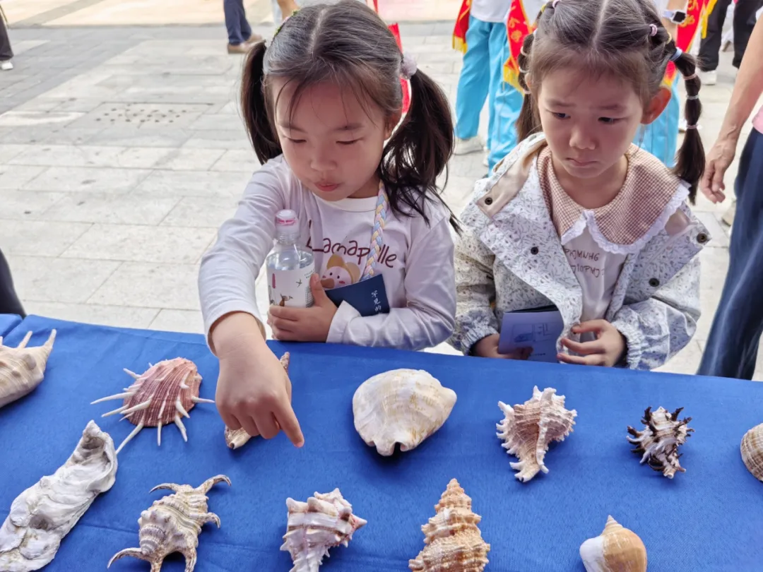 活动现场,辖区学校代表、居民齐聚现场,共赴这场兼具人文温度与科学深度的盛会。古林古海岸遗迹博物馆的科普展位前人头攒动,成为现场活动中最具吸引力的“科普打卡点”之一。讲解老师化身“地质探秘向导”,通过实物展示、图文讲解、互动问答等形式,向现场观众系统介绍古海岸遗迹的形成历程——从距今约6000年以来渤海湾的海陆变化,到贝壳堤是如何层层堆积,生动还原了天津滨海地区“沧海桑田”的地质变迁。展台中央,馆藏珍稀标本格外引人注目:形态各异、色彩艳丽的蜘蛛螺、鹦鹉螺、凤螺、涡螺……,讲解老师用通俗易懂的语言介绍贝壳的属名、分类等,让观众直观感受到渤海湾西岸沿海平原的历史变迁与这些神奇海洋贝类的奥秘。与此同时,来自大港第一小学和大港第三小学的“滨小宣”们的表现同样亮眼。这些“滨小宣”志愿者身穿校服,佩戴着绶带,大方自信地向观众介绍古贝壳堤的“前世今生”:“大家知道吗?贝壳堤的每一层贝壳都像一页书页,记录着大海的进退……”他们还向群众发放《贝壳堤科普宣传手册》,让科普知识“看得懂、记得住、用得上”。现场不少家长带着孩子驻足聆听,小朋友们一边翻看手册,一边向小讲解员提问,气氛热烈而温馨。