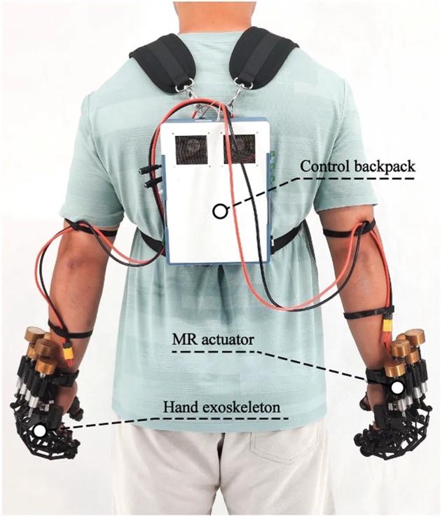 控制背包、磁流变制动器以及手部外骨骼共同构成了整个系统