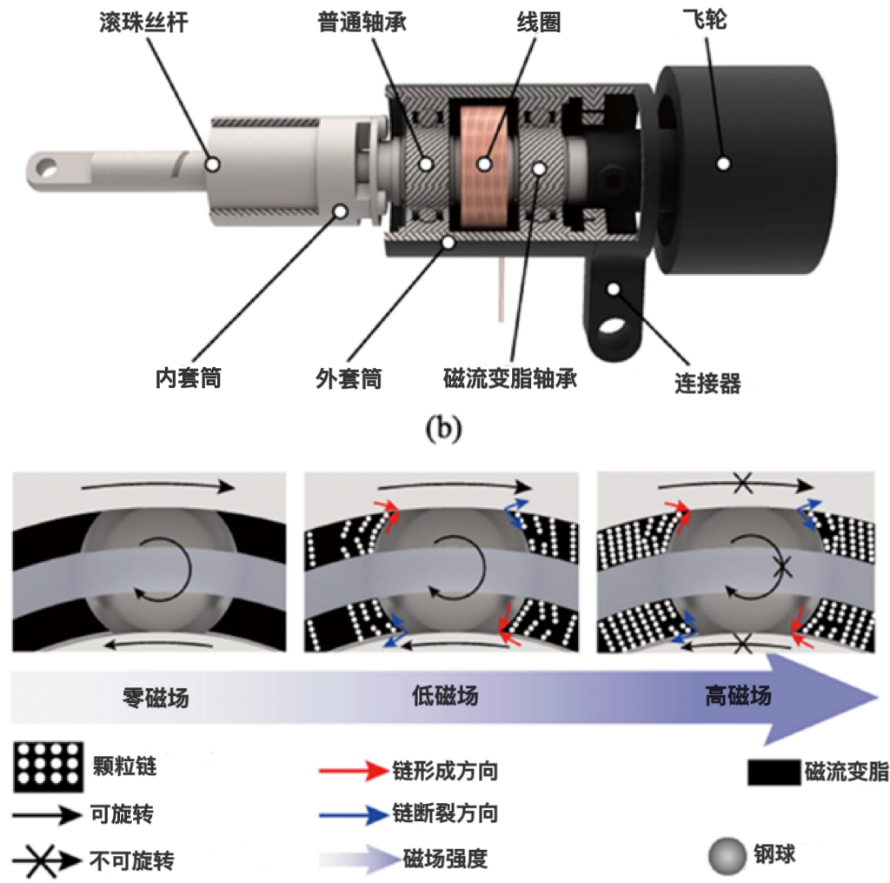 其核心是磁流变材料在不同磁场下的状态变化——零磁场时颗粒随机分布可自由旋转,施加磁场后颗粒形成链状结构限制旋转
