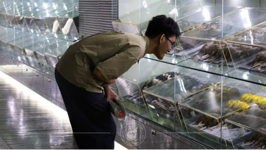 新生细致观察鸟类标本