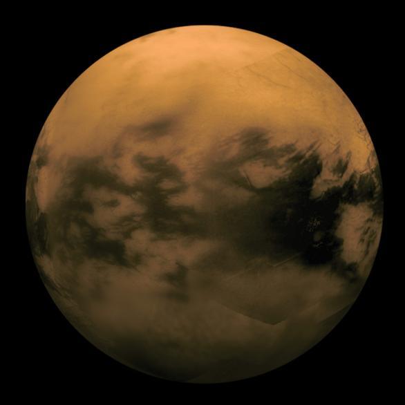 厌倦地球上脏兮兮的水源和灰蒙蒙的天空了吗?不妨前往这个唯一有地表湖泊和海洋的外星世界吧!在土卫六上,能看到表面渗出微光的液态甲烷,最大的克拉肯海( Kraken Mare )覆盖面积超过40万平方公里,比地球上的里海还大。由于克拉肯海相当深邃,看起来甚至像一大块固体,它最大的浪也仅有1.5厘米高,可别不小心失足坠海了!