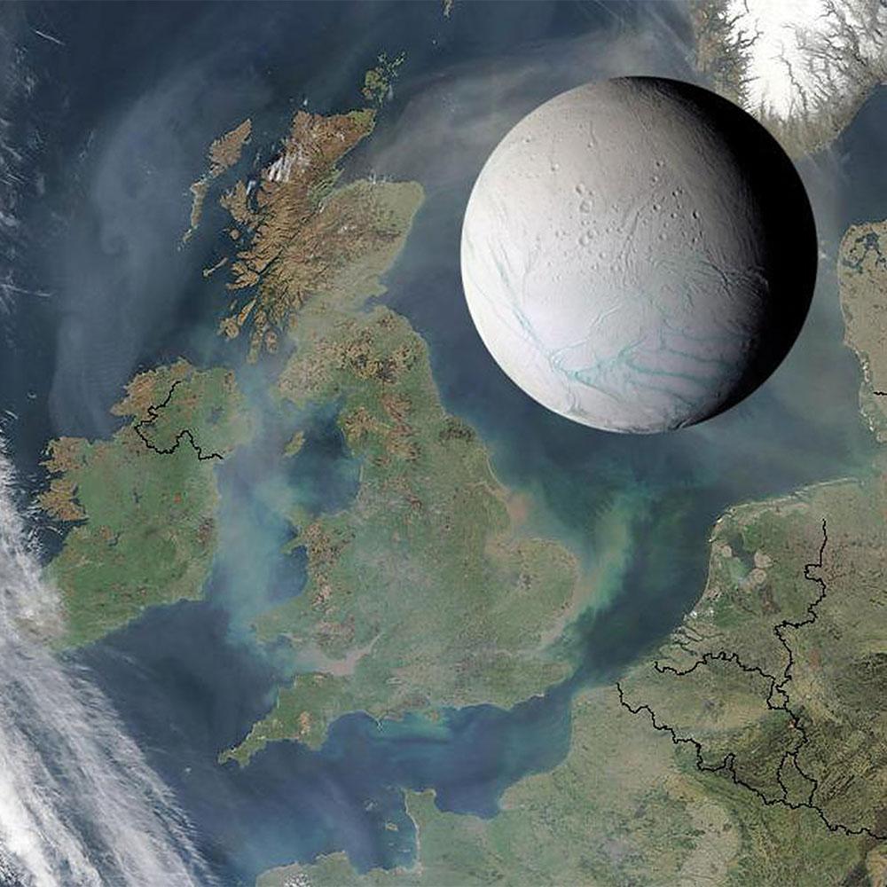 把土卫二和英国摆在一起,可以看出这颗卫星并不算大