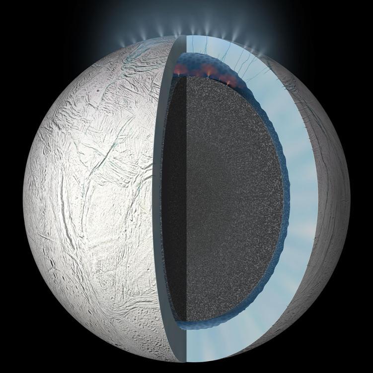 最有趣的可能就属冰火山,因为冰火山喷出的不是熔岩,而是冰。这些在南极附近的冰火山也成为数百座喷泉的动力。喷泉的水来自广大的地下海洋,由土卫二内部和土卫四的潮汐力加热。这颗卫星虽然不大,却充满了惊喜。谁知道在地表下还藏了些什么呢?有些人甚至认为,这里的环境可能适合某些原始生命生存。