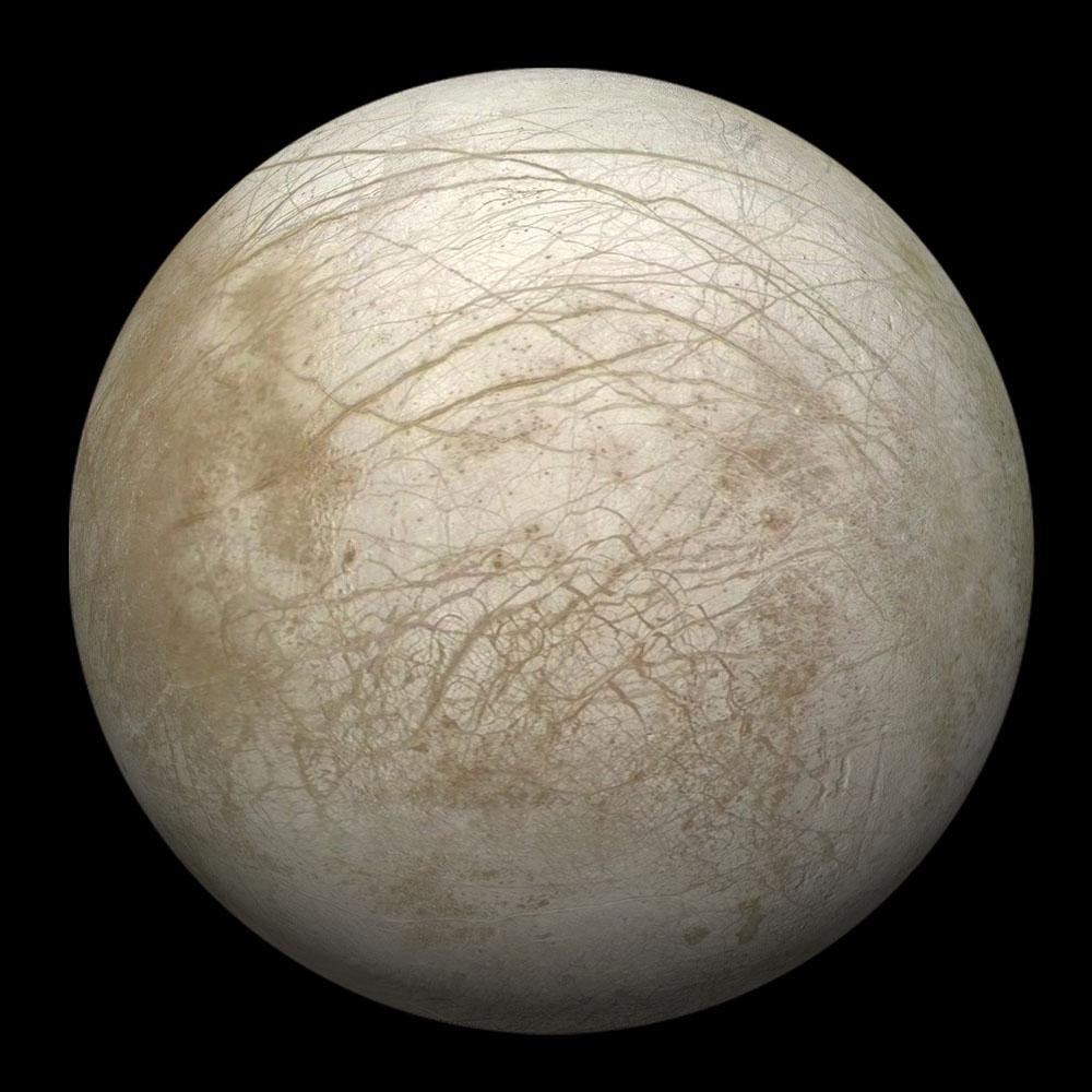欧罗巴始终以同一面面对木星,每3.5天绕木星一圈。椭圆形的轨道让欧罗巴被巨大的木星又推又拉,这也会使欧罗巴的核心被加热,可能由铁形成的炙热核心让欧罗巴的海洋层保持液态,在冰冻地表下方有广大的地下海洋存在,所含的水量甚至比地球还多。欧罗巴内部拥有热源和水,因此可能相当适合生命生存。原始冰层覆盖了欧罗巴的表面,使它成为太阳系最平坦的天体之一。