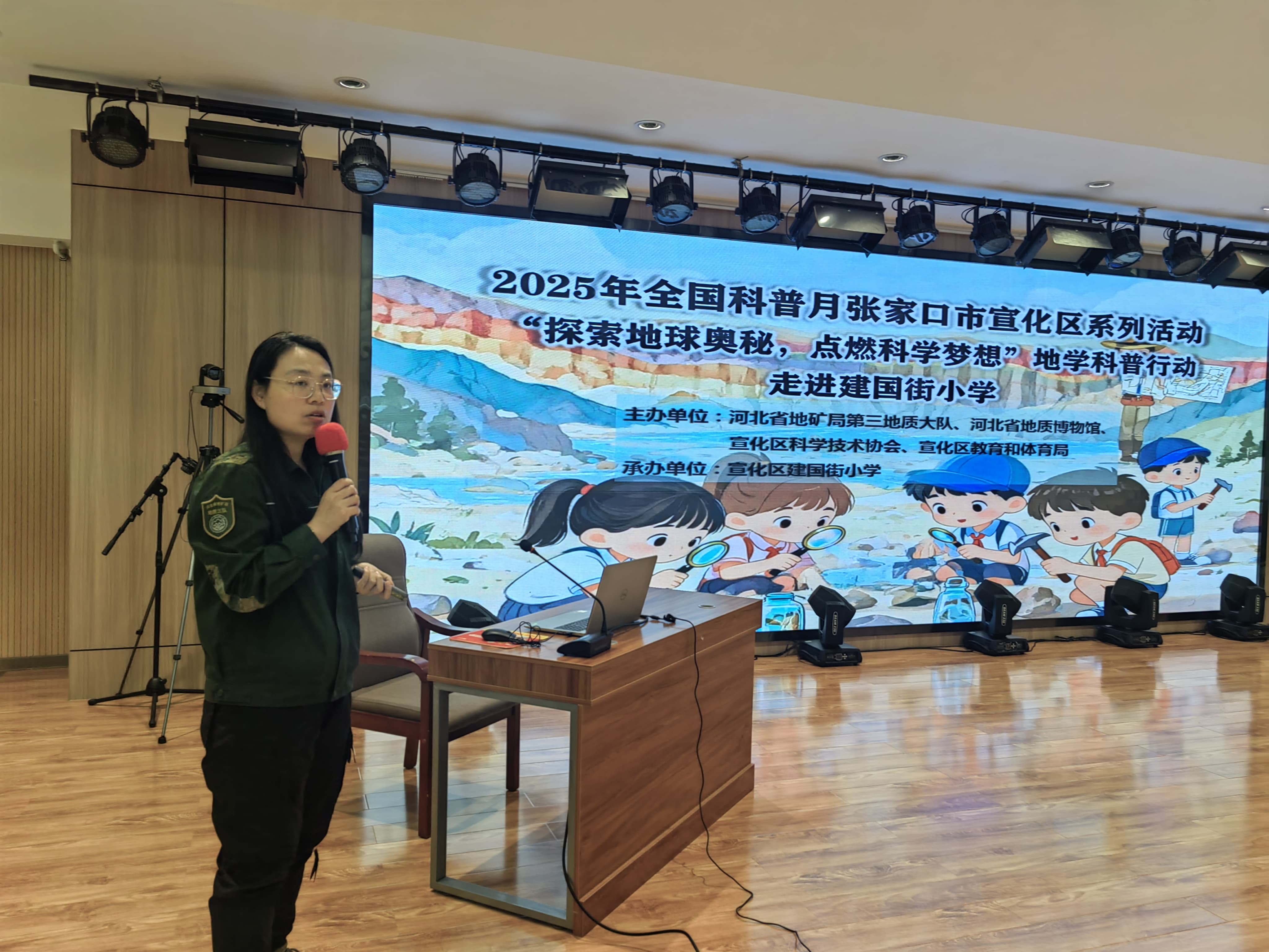 活动以一场生动的地学科普讲座拉开帷幕。河北省地矿局第三地质大队的专家以无人机地学应用”“磁法勘探原理”“矿物岩石认知”三大核心内容展开讲解。结合张家口本地地质特征,用通俗语言解读岩石形成、矿产资源分布等知识。为让知识更易理解,专家巧妙运用比喻:将无人机技术比作“空中测绘师”,通过案例展示其在地形建模、灾害监测中的实战作用;把磁法勘探形容为“地球 CT”,用动画演示磁场异常与矿产资源勘探的关联。讲座中,学生们认真记录,不时举手提问“岩石为什么有不同颜色”“无人机能找到地下水吗”,专家耐心解答的同时,还现场展示了岩石标本,让知识更具实感。