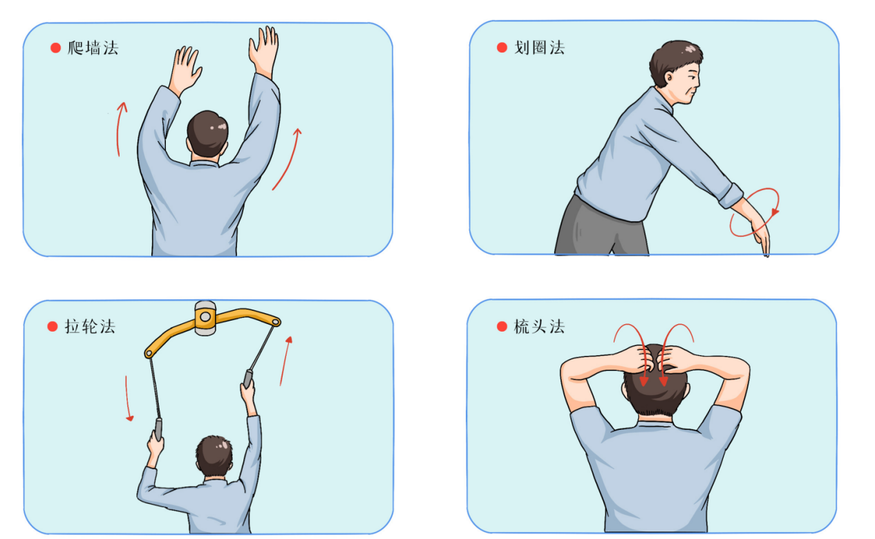 ·康复要点:无痛范围内渐进式关节活动训练;推荐钟摆运动、爬墙训练、毛巾拉伸(重点改善外旋功能);禁止暴力牵拉!可能加重炎性反应。