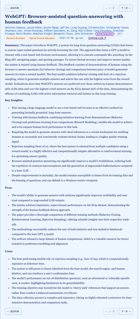 需要注意的是,论文的摘要与分类均由 AI 生成,存在潜在的不准确性,用户在引用时仍应参考原始论文。这也体现出该工具的定位:辅助研究,而非替代深入阅读。