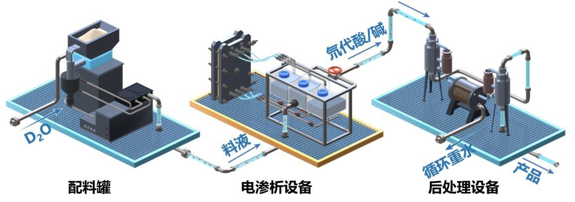 长期以来,氘代物的生产工艺复杂多样,往往需要多步反应,涉及到昂贵的催化剂、苛刻的反应条件、复杂的设备和大量的能耗。而且反应结束后,还需要耗费大量的时间和资源来对目标产物进行分离和提纯,这些问题使得氘代物的价格居高不下,严重制约了氘代物的大规模应用和产业发展。