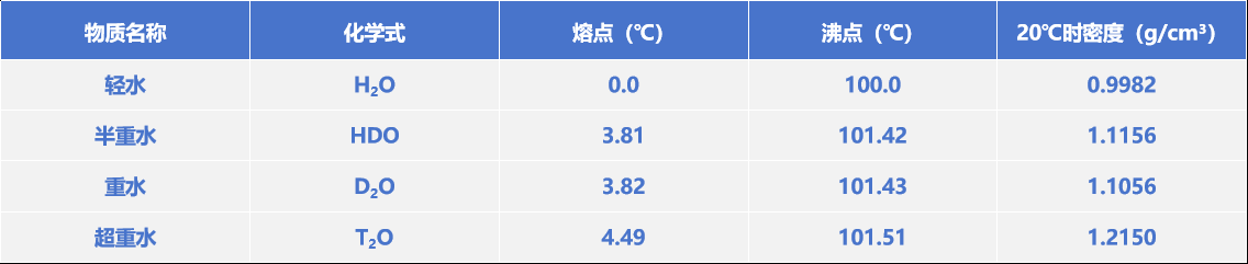 在初高中的化学学习中,我们通常认为,由同一种元素的不同同位素构成的物质,它们的化学性质相同,但物理性质不同。例如重水和超重水的相对分子质量更大,因密度、熔沸点会略高于普通水。