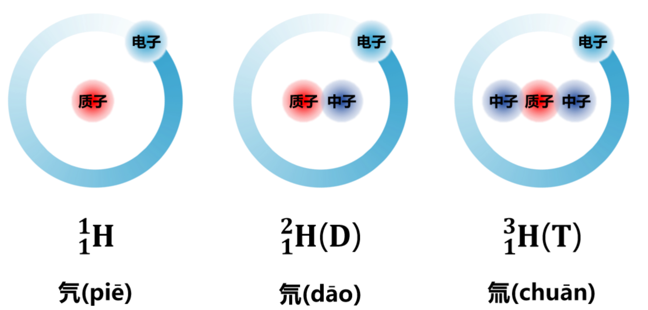 我们都知道氢元素,它是宇宙中最轻、最丰富的元素。但你可能不知道,氢元素有三种同位素,即氕(piē)、氘(dāo)、氚(chuān),分别对应¹H、²H和³H。