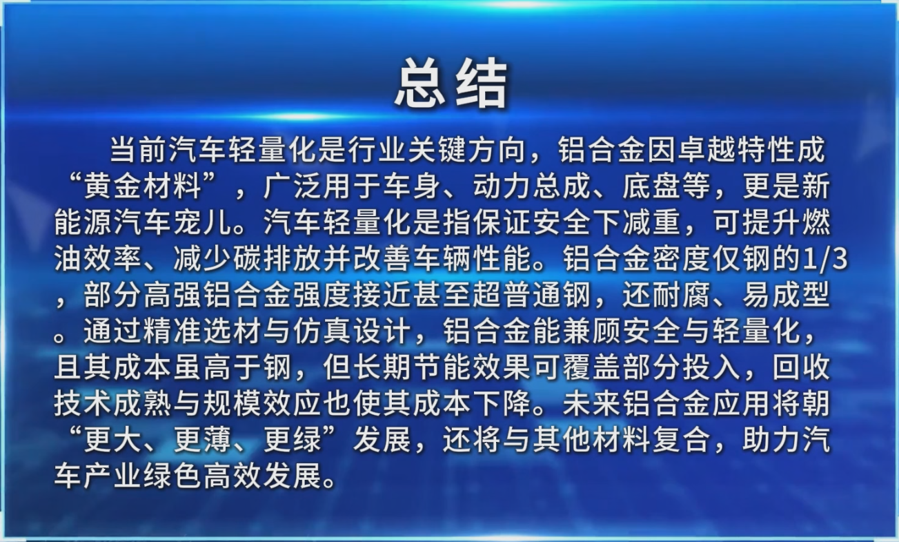 随着技术的持续进步,新型铝合金材料将不断涌现,其综合性能将不断提升,成本有望持续降低。此外,铝合金与其他材料的复合应用有望成为新的研究热点,为汽车制造带来更多创新可能。铝合金将助力汽车行业在节能、环保、性能提升等关键领域取得重大突破,推动汽车产业向绿色、高效、可持续方向发展。