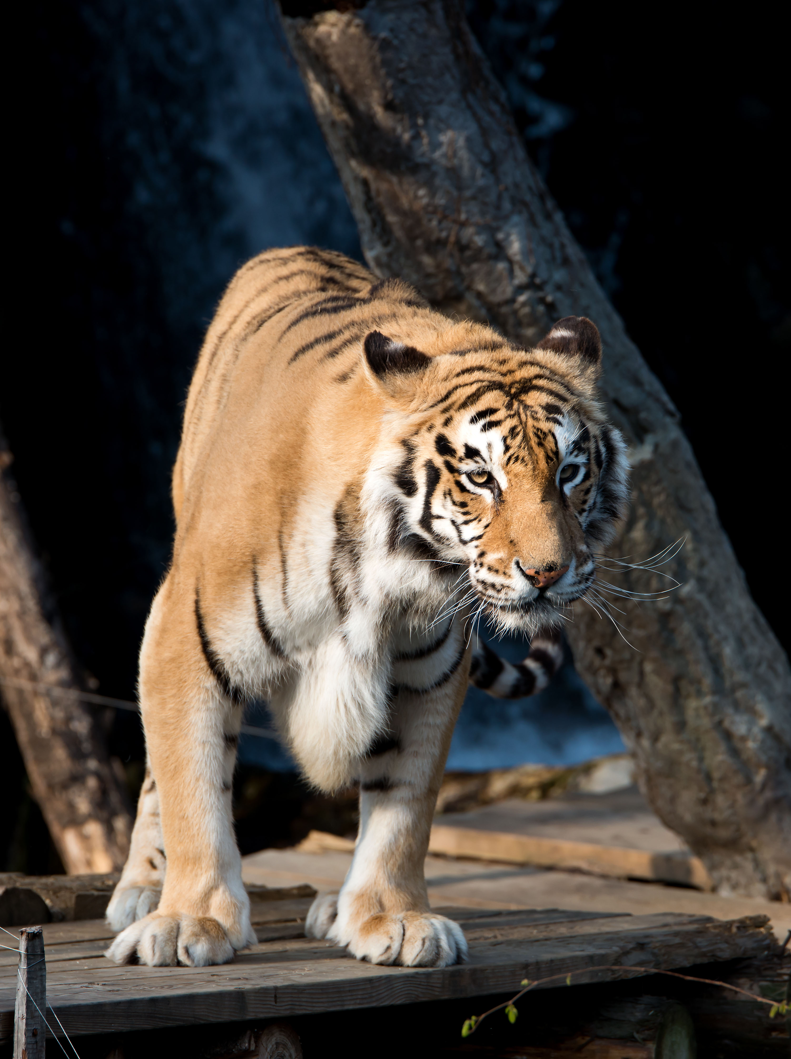 领地霸主:成年虎有强烈领地意识,雄虎领地范围可达数百平方公里,通过刮擦树木、喷洒尿液标记领地。