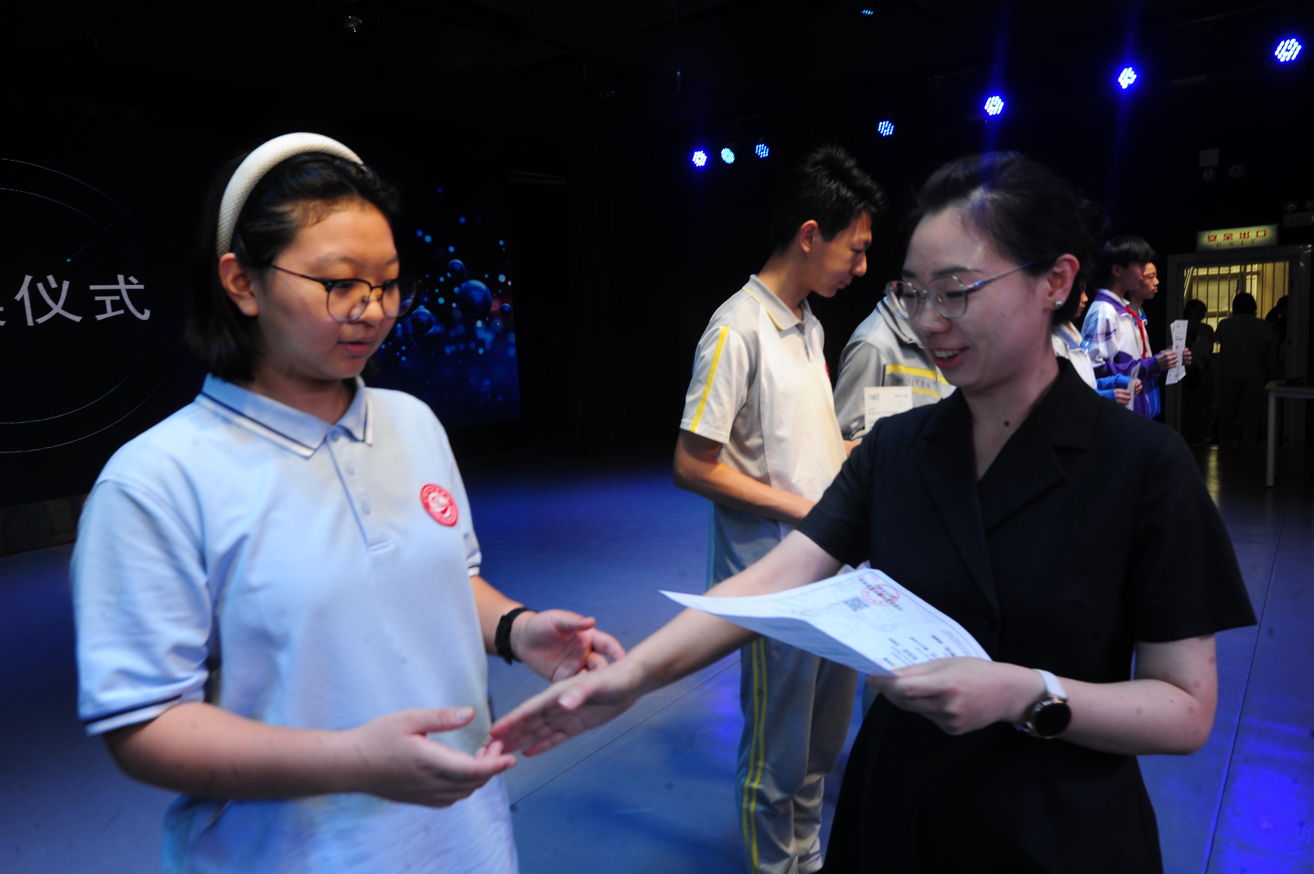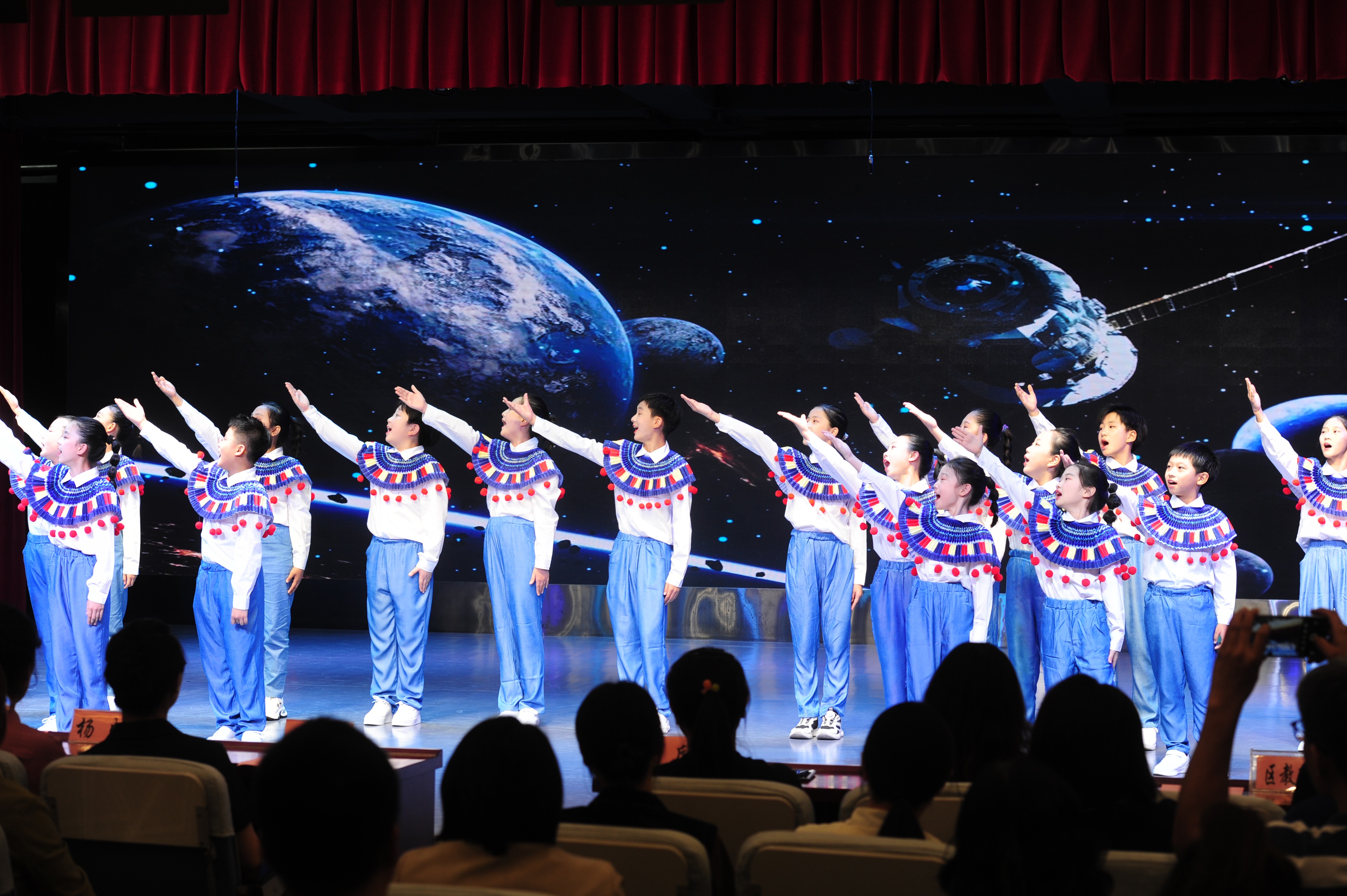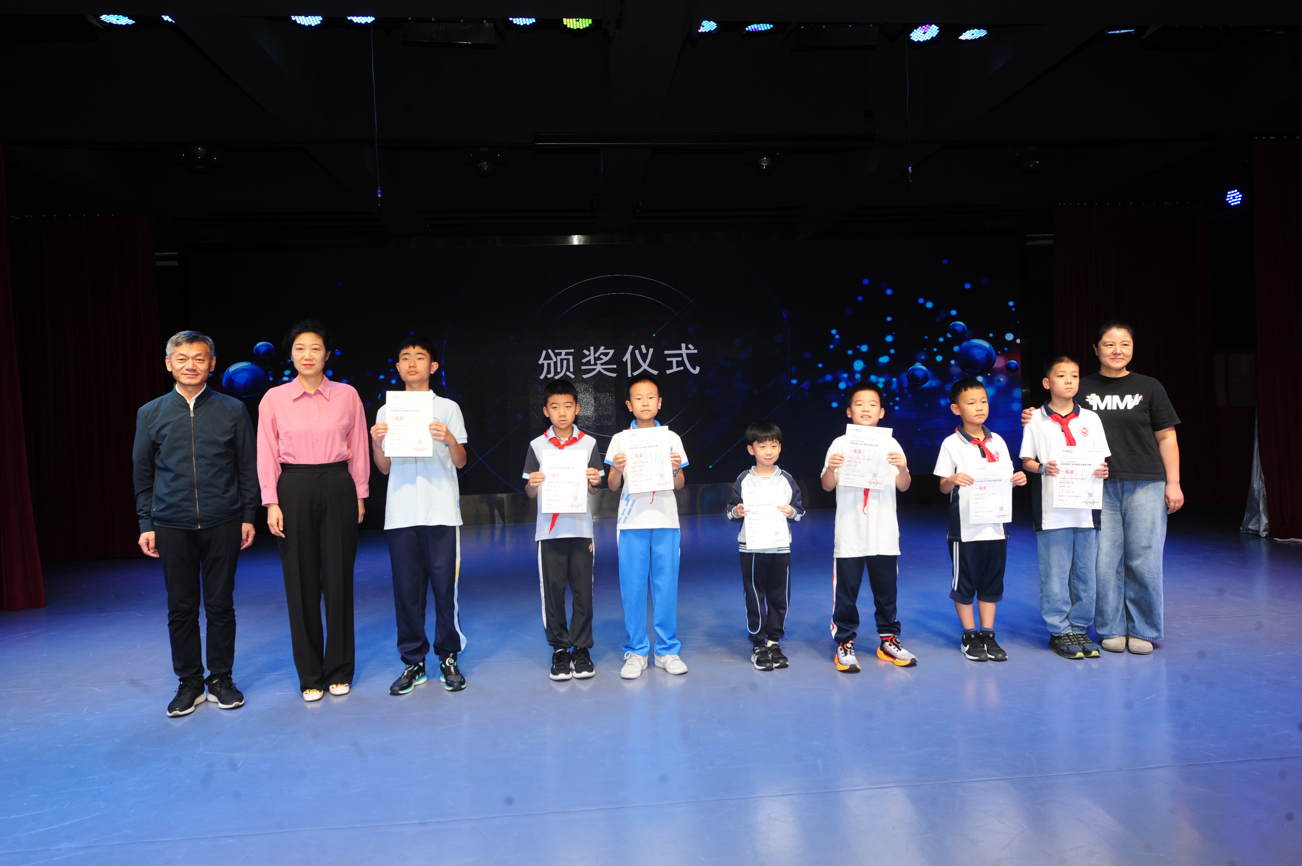 随着领导们共同按下手印,和平区首届青少年科技节正式启动,科技节的号角已经吹响,创新的征程从此启航。此外,劝业场街域“科学 + 科普志愿服务队”授旗仪式也顺利举行,这面旗帜承载着传播科学、服务社会的使命。最后,和平区小白鸽红领巾合唱团用天籁之音演绎的《玉盘》,悠扬的歌声如星辰大海,照亮了科学的未来之路。