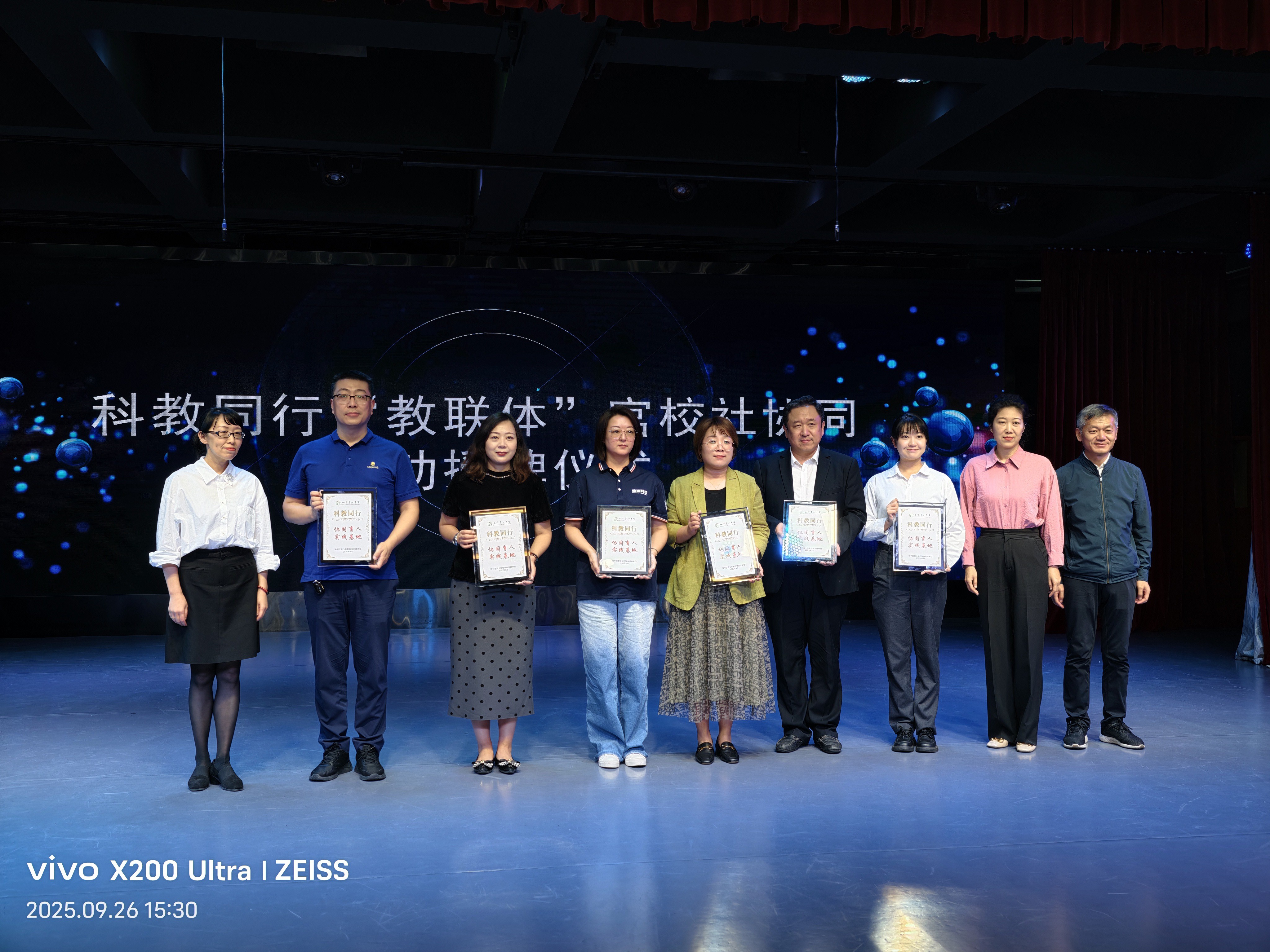 科普教育需要全社会携手同行。活动现场举行了科教同行“教联体”宫校社协同活动授牌仪式,来自南开大学光伏材料与电池全国重点实验室、天津科学技术馆、天津市科技工作者之家、比亚迪(迪空间)新能源科普馆、蜂铭科技天津有限公司、和平区文化馆等各界代表齐聚一堂,共同见证这一重要时刻。这一块块牌匾,象征着科普资源的深度整合与共享。和平区青少年宫作为全国科普教育基地,将与学校、社区等各方力量紧密合作,形成强大的科普教育合力,为青少年打造更广阔的科学天地,让他们在丰富的科普活动中茁壮成长。