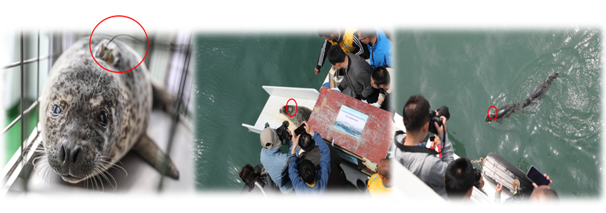 斑海豹放归后会被安装卫星追踪装置,它们的迁徙路线跨越多个国家和海域,直到装置失效。斑海豹虽然放归大海,但是整个野外的种群的情况每时每刻在发生变化。就像我们人类需要人口普查一样,每年斑海豹繁殖季和洄游季节,我们大连市渔业渔政部门会联合进行救助单位,进行野外斑海豹的调查和保护执法行动,对野外种群动态和栖息地的情况进行监测。