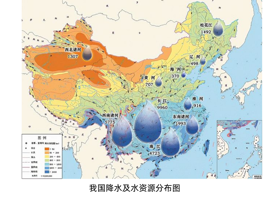 多年平均水资源量:9900余亿立方米≈全国36%的水资源量,居世界第三