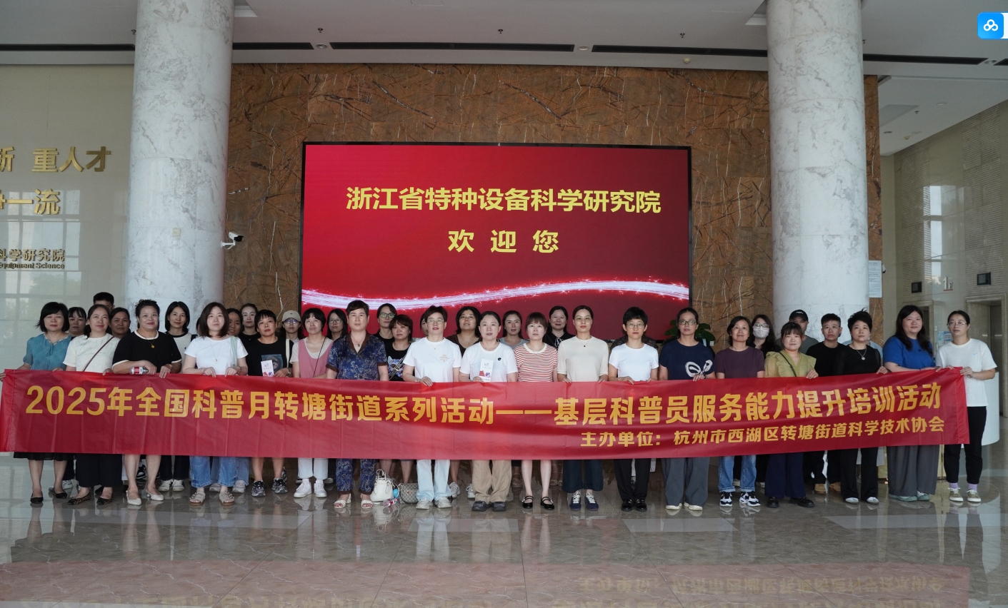 为积极响应全民科学素质纲要实施工作办公室关于广泛开展首个全国科普月活动的号召,同时加强基层科普工作人员队伍建设,进一步提升科普员服务能力,持续推进科普重点工作落地;9月28日,2025年转塘街道基层科普员服务能力提升培训暨科普中国落地应用活动在浙江省特种设备科学研究院海宁基地顺利举行。此次活动由杭州市西湖区转塘街道科学技术协会主办,浙江省特种设备科学研究院协办,来自街道村社的近50名基层科普员全程参与。