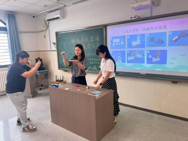 为了让理论知识落地生根,讲座结束后还设计了“动手探科学”实践环节。活动以海洋流动、波浪运动、潮汐变化等物理现象为切入点,通过“风能转化为电能”小实验,让同学们在组装装置、观察现象的过程中,直观感受风运动的能量转化原理。动手实践中,孩子们不仅乐于分享操作心得,更在亲身体验中深化了对科学原理的理解,科学探索精神被充分激发。