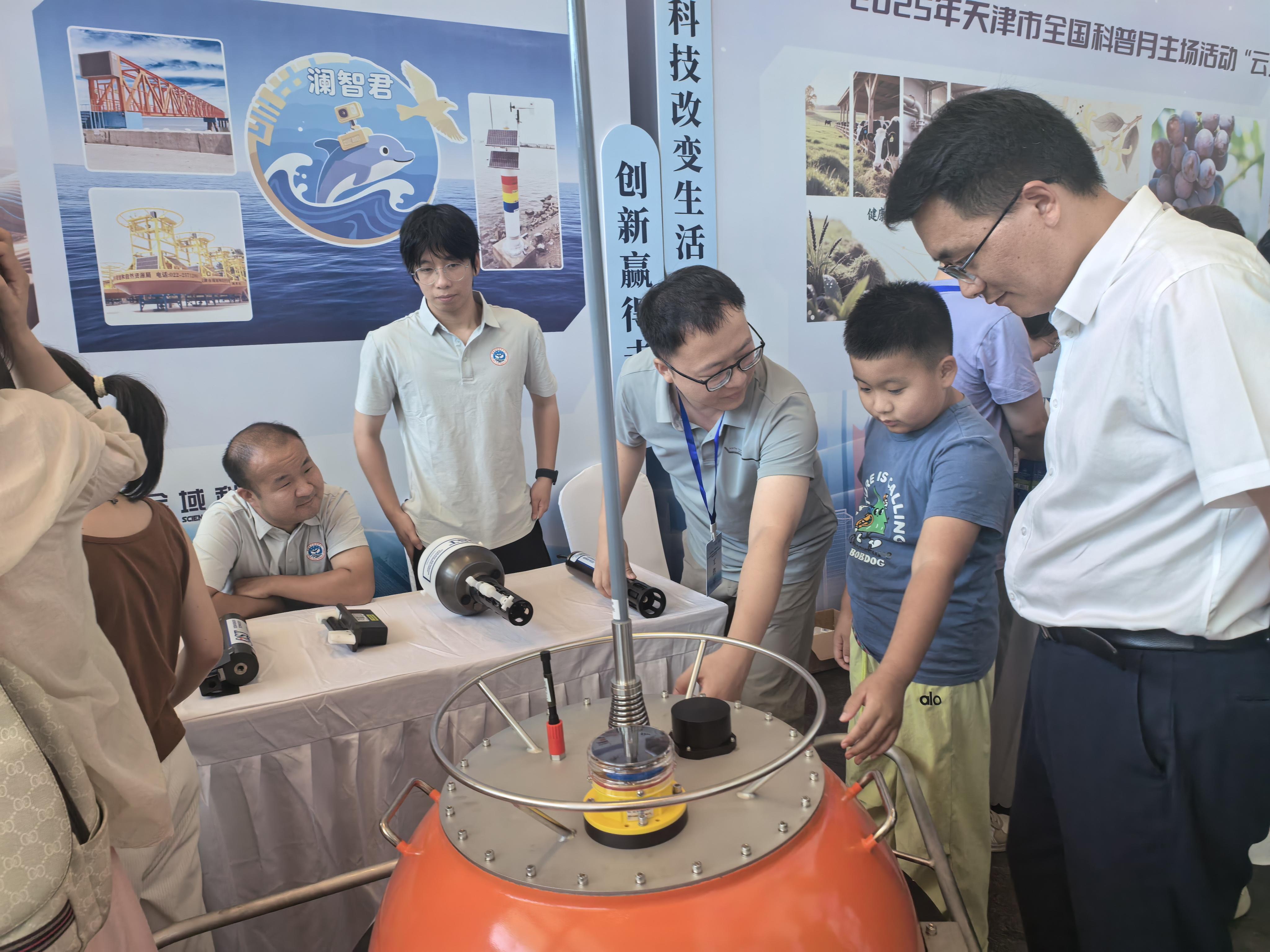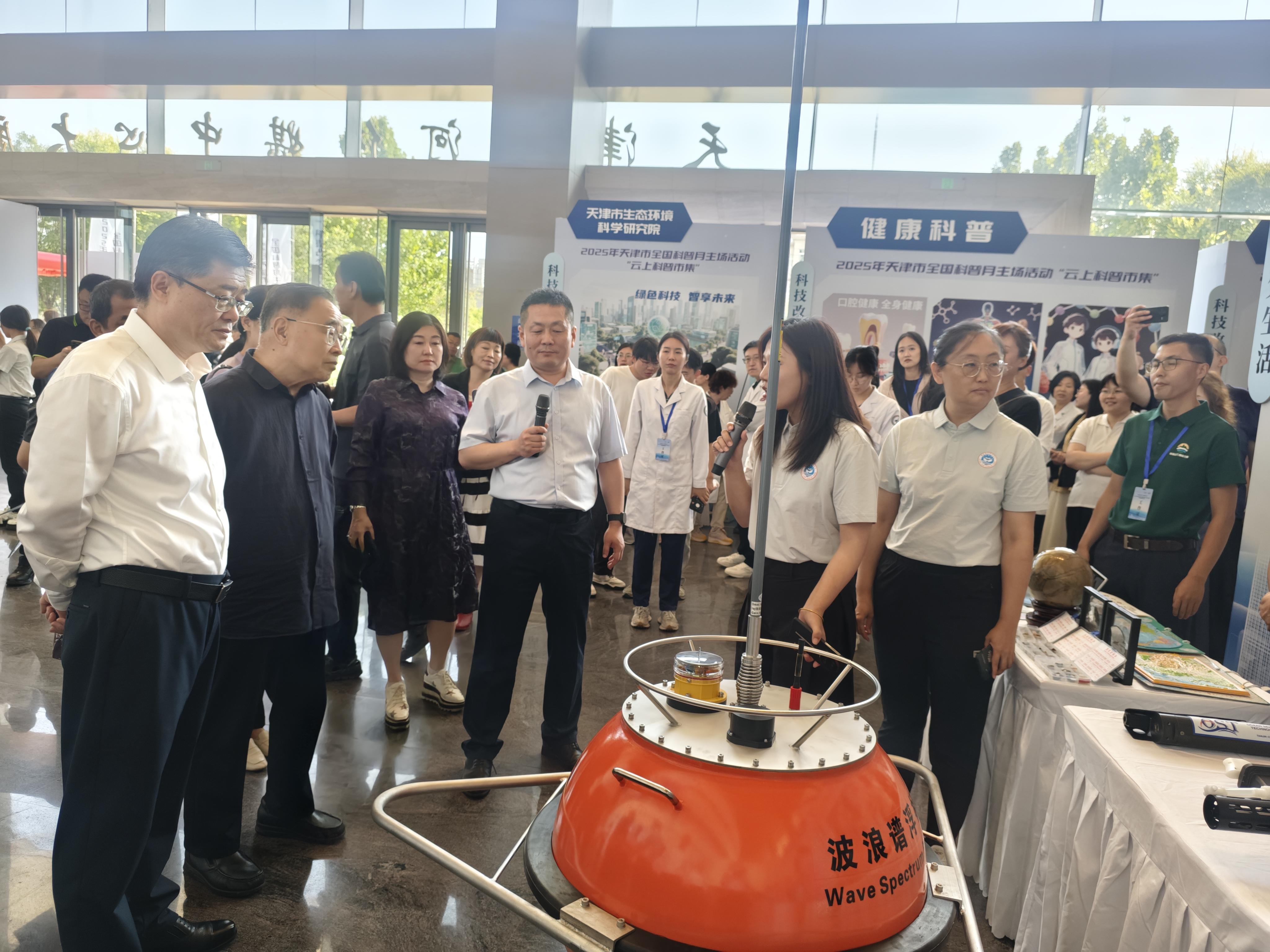本次活动以“科技改变生活,创新赢得未来”为主题,分为“云上科普市集”“天津科普之夜文艺展演”和“海河科普灯光秀”三大板块,集中展示天津市在科普推广、科技创新与科学文化融合方面的成果。中心应市规划资源局之邀,在“云上科普市集”展示中心Argo浮标用温盐深测量仪、直读式高精度温盐深测量仪、水下滑翔机载温盐深剖面测量仪、自容式抗污染温盐深测量仪和波浪谱浮标。天津电视台、天津教育频道对中心成果进行了现场报道。光明网现场直播。