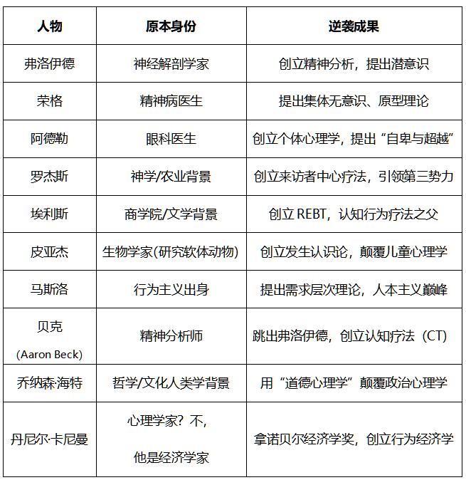 二、心理学史上的“外行逆袭榜”(不完全名单)