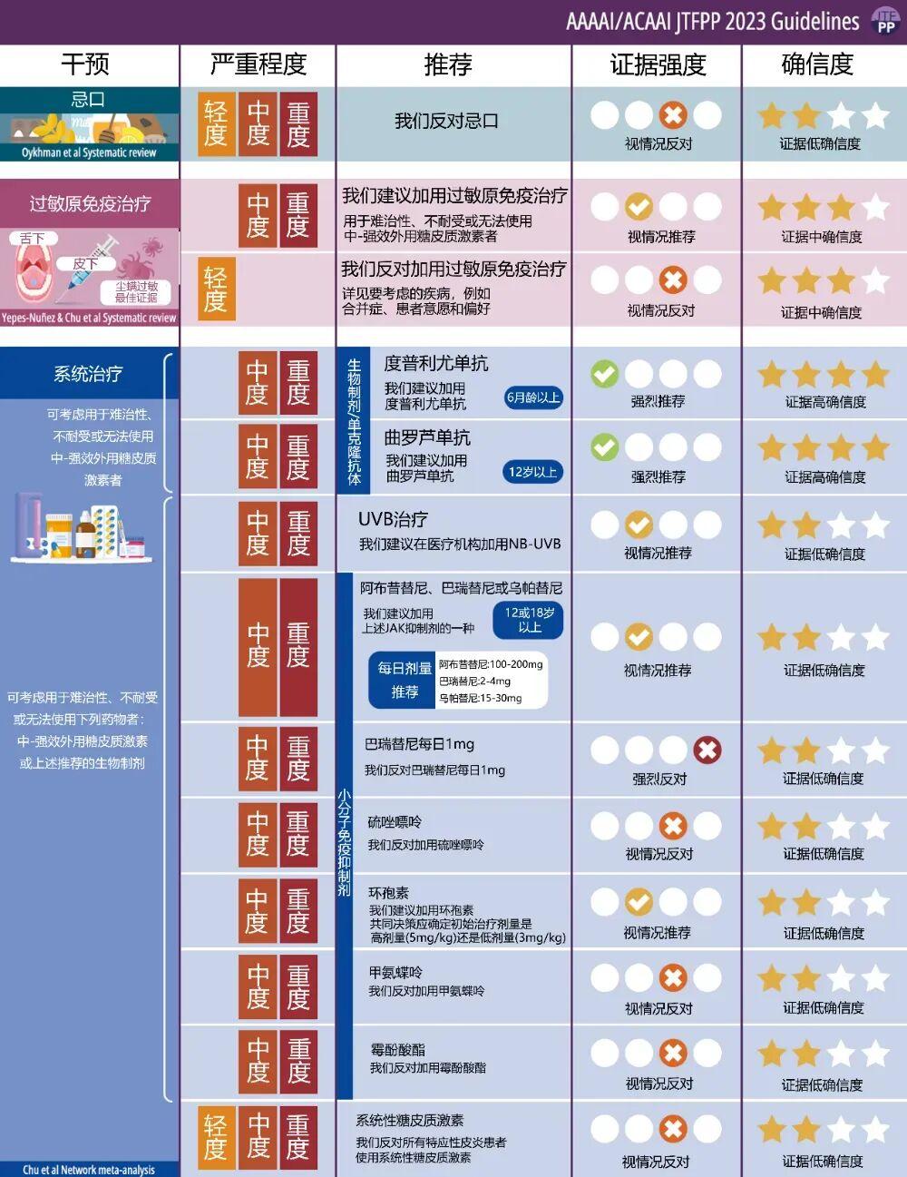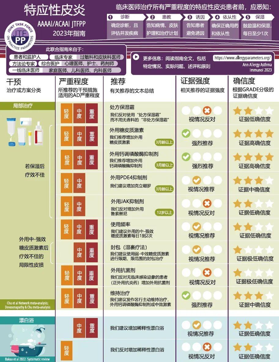 美国过敏、哮喘与免疫学会/美国过敏、哮喘与免疫学院联合工作组实践参数委员会(AAAAI/ACAAI JTFPP)发布的《 2023 年的特应性皮炎管理指南》也有相关内容: