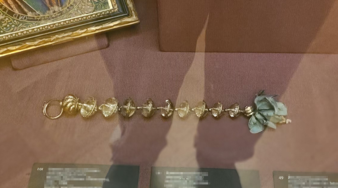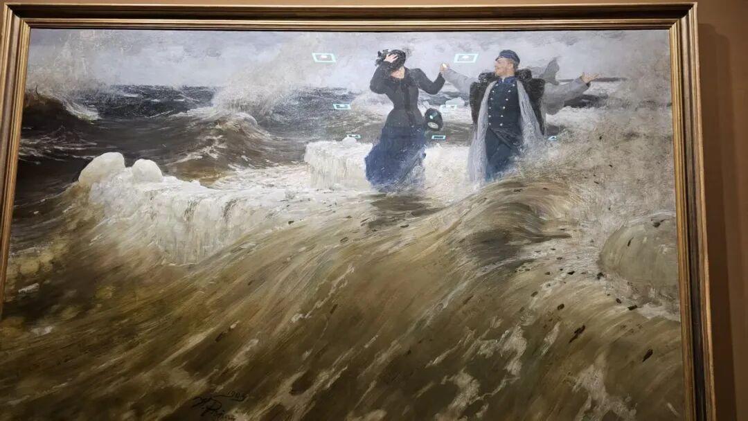 可以在画上看到展柜外的顶灯影像丨自己拍的