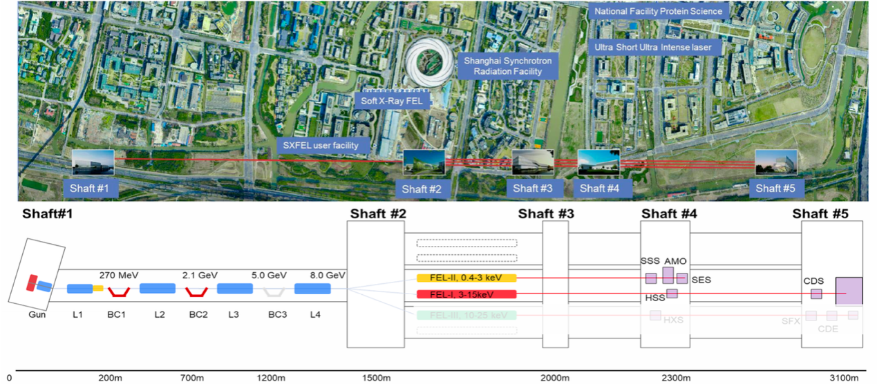 给原子拍“电影”怎么能少得了中国?位于上海张江的SHINE(Shanghai HIgh repetitioN rate XFEL and Extreme light facility)是全球仅有的几台在建的硬X射线自由电子激光装置之一。它的核心是一台8 GeV(80亿电子伏特)的连续波超导直线加速器,总长3.1 km,每秒可产生高达100万次脉冲。将产生0.2 GeV–15 GeV全覆盖(覆盖软X射线到硬X射线)的 X 射线自由电子激光(XFEL),其峰值亮度远超传统同步辐射光源。