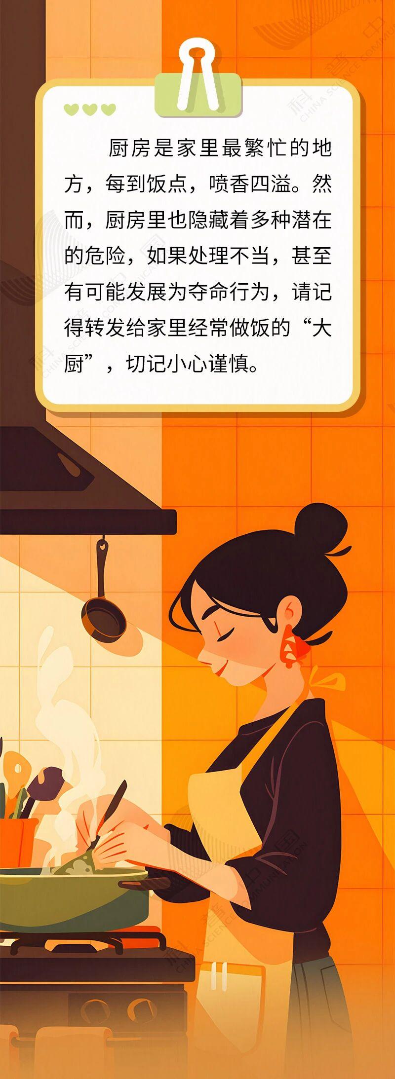 图文简介: 厨房是家里最繁忙的地方,每到饭点,喷香四溢。然而,厨房里也隐藏着多种潜在的危险,如果处理不当,甚至有可能发展为夺命行为,请记得转发给家里经常做饭的“大厨”,切记小心谨慎。