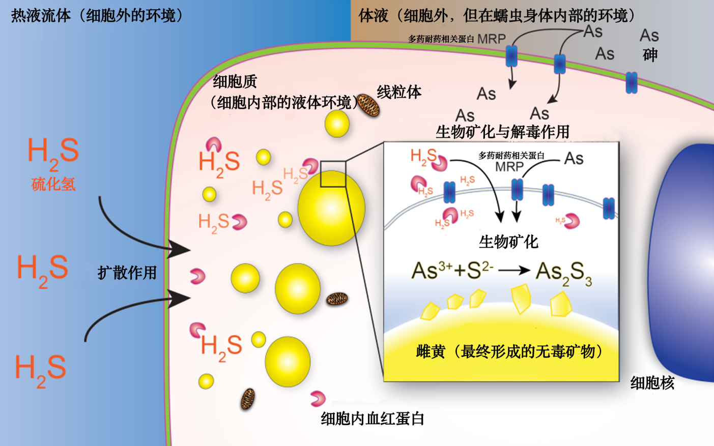2025年8月,中国科学院海洋研究所的研究团队在《PLOS生物学》(PLOS Biology)上发表了一项惊人发现:赫斯帕拉尔文氏蠕虫通过一种前所未有的“以毒攻毒”机制,将两种致命毒素——砷和硫化氢——结合成无毒的雌黄矿物,实现了生物界首个已知的解毒性生物矿化。