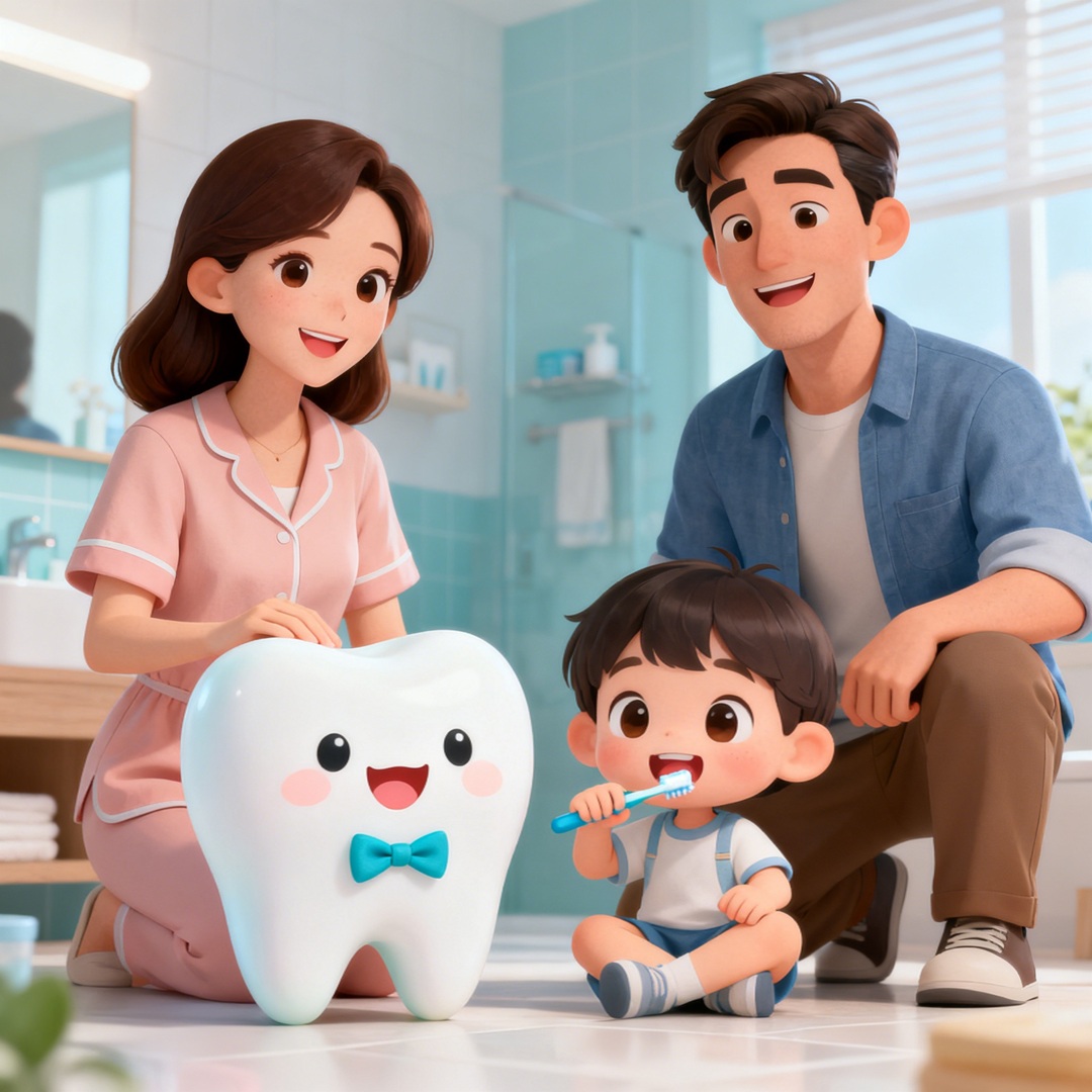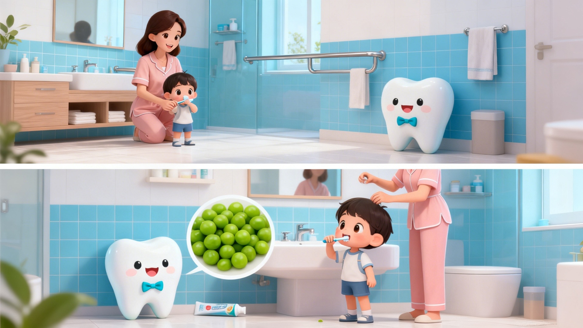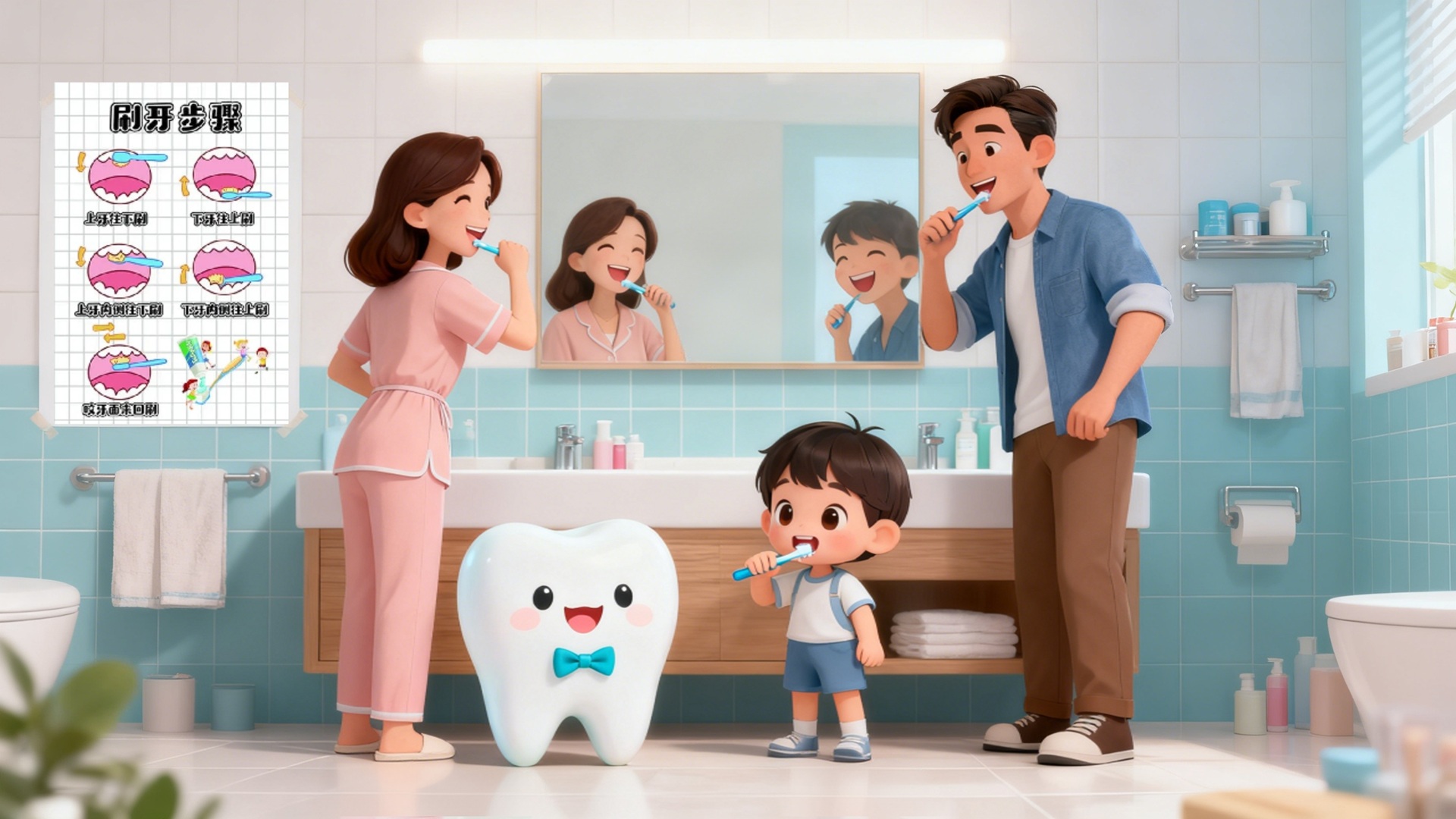 3-6岁是乳牙防蛀关键期!咱们一起刷牙,让刷牙时间变成全家的快乐时间~”