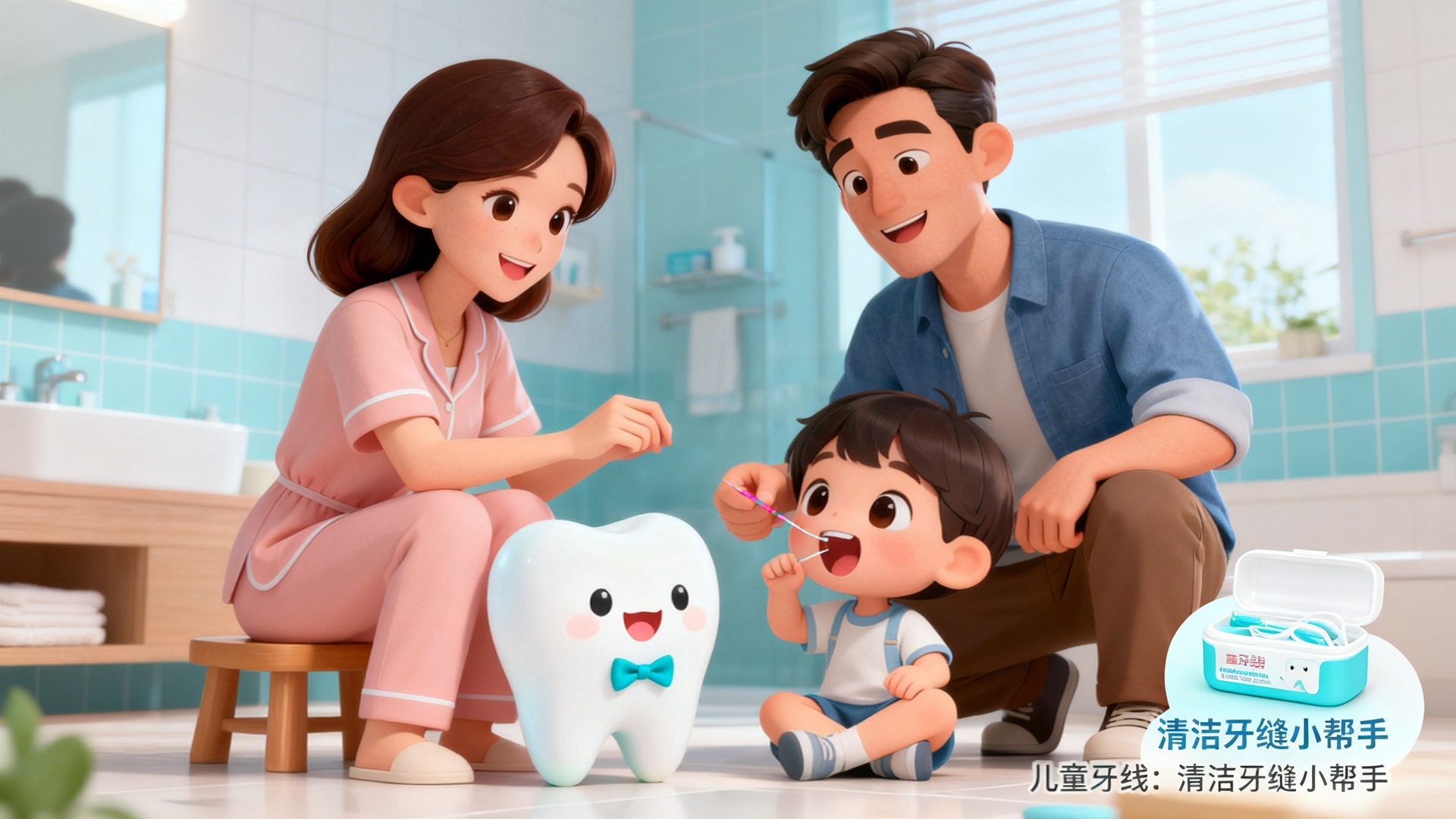 除了刷牙,妈妈还可以帮宝宝开始用牙线!每天晚上认真刷一次、检查一次,牙齿才能健健康康~”