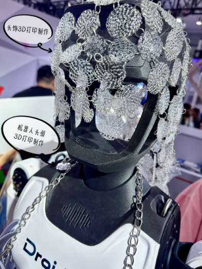 如果说鞋子追求实用,那3D打印首饰则主打 “独一无二”。在2025世界机器人大会上,某科技公司展示了Y3K美学套装:用树脂打印的透明光感头纱,与镂空圆片串联出轻盈质感;通过3D建模一体成型的金属风服装与未来感包包,将“复古未来”的潮流畅想变为现实。