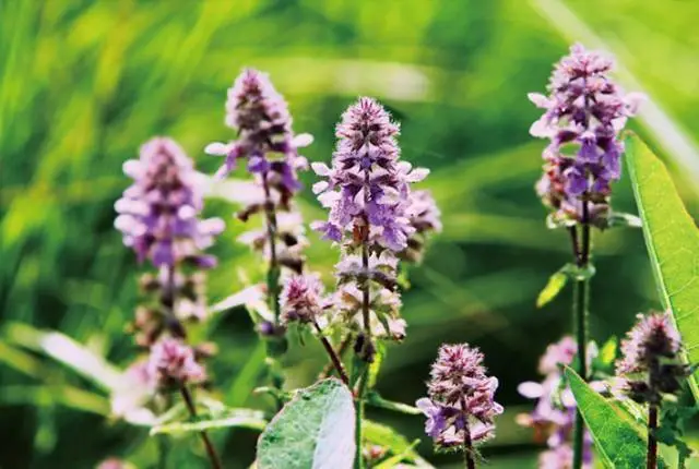 毛水苏引人入胜的花朵,绽开时最见药性。尤其七八月份的花期,淡紫色的唇形小花轮生在茎顶,像一束束点燃的馨香,朝着天空的方向散发热情,形成一个美丽的轮伞花序。在花序中有六朵花,花朵与花朵彼此之间保持着一定的距离,排列成一个长长的假穗状花序,仿佛是大自然精心编织的花篮。