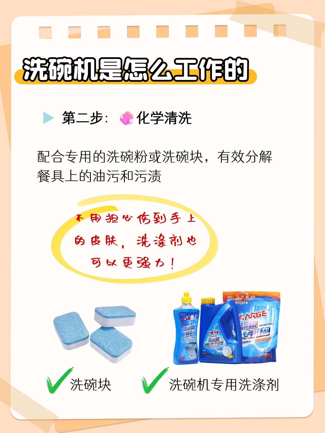 •化学清洗:配合专用的洗碗粉或洗碗块,有效分解餐具上的油污和污渍。不用担心伤到手上的皮肤,洗涤剂也可以更强力!