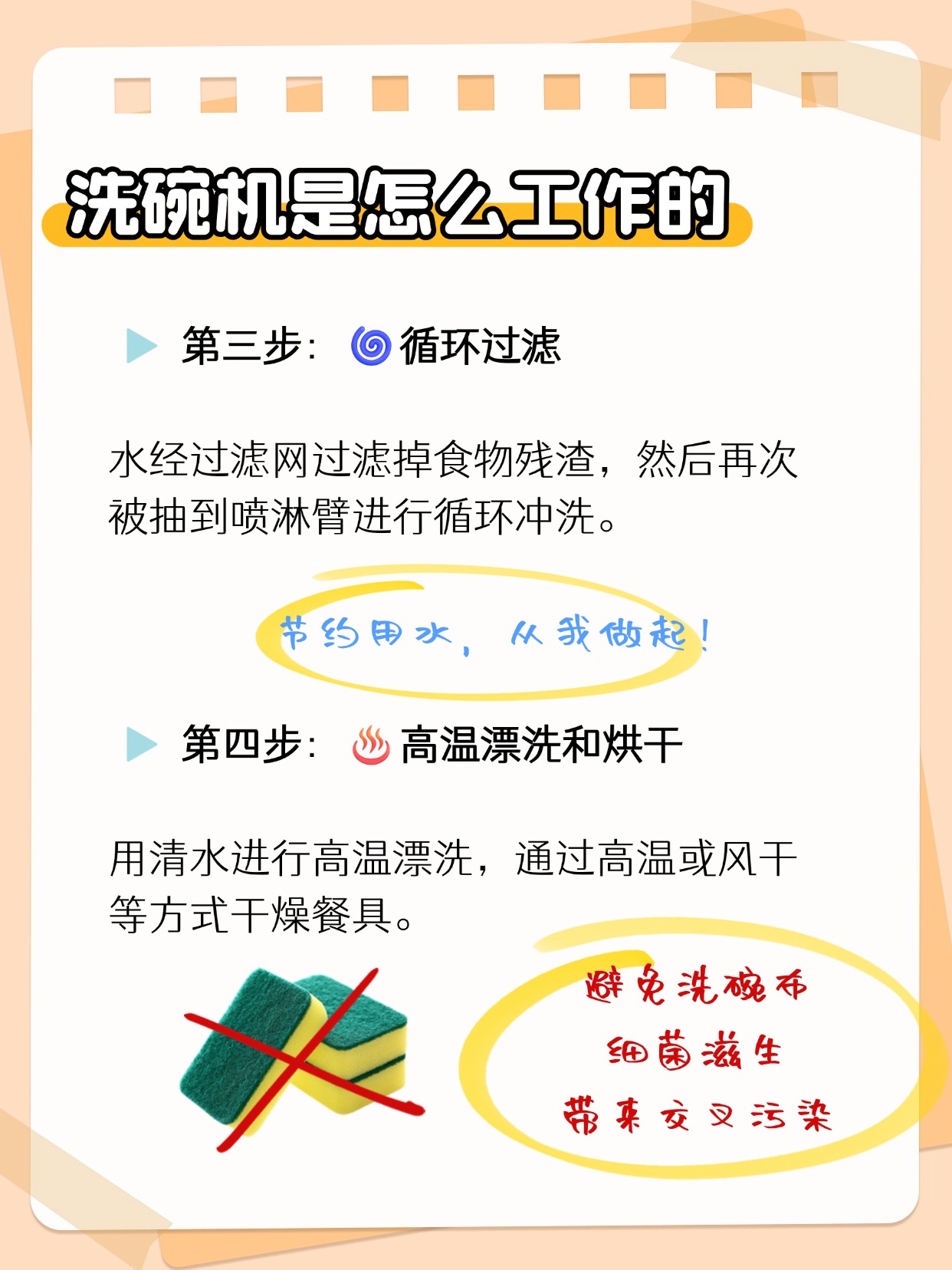 先上答案,洗碗机洗碗确实比你洗得更干净,不仅如此,还更节约水!看了以下的清洗步骤,你就知道为什么: